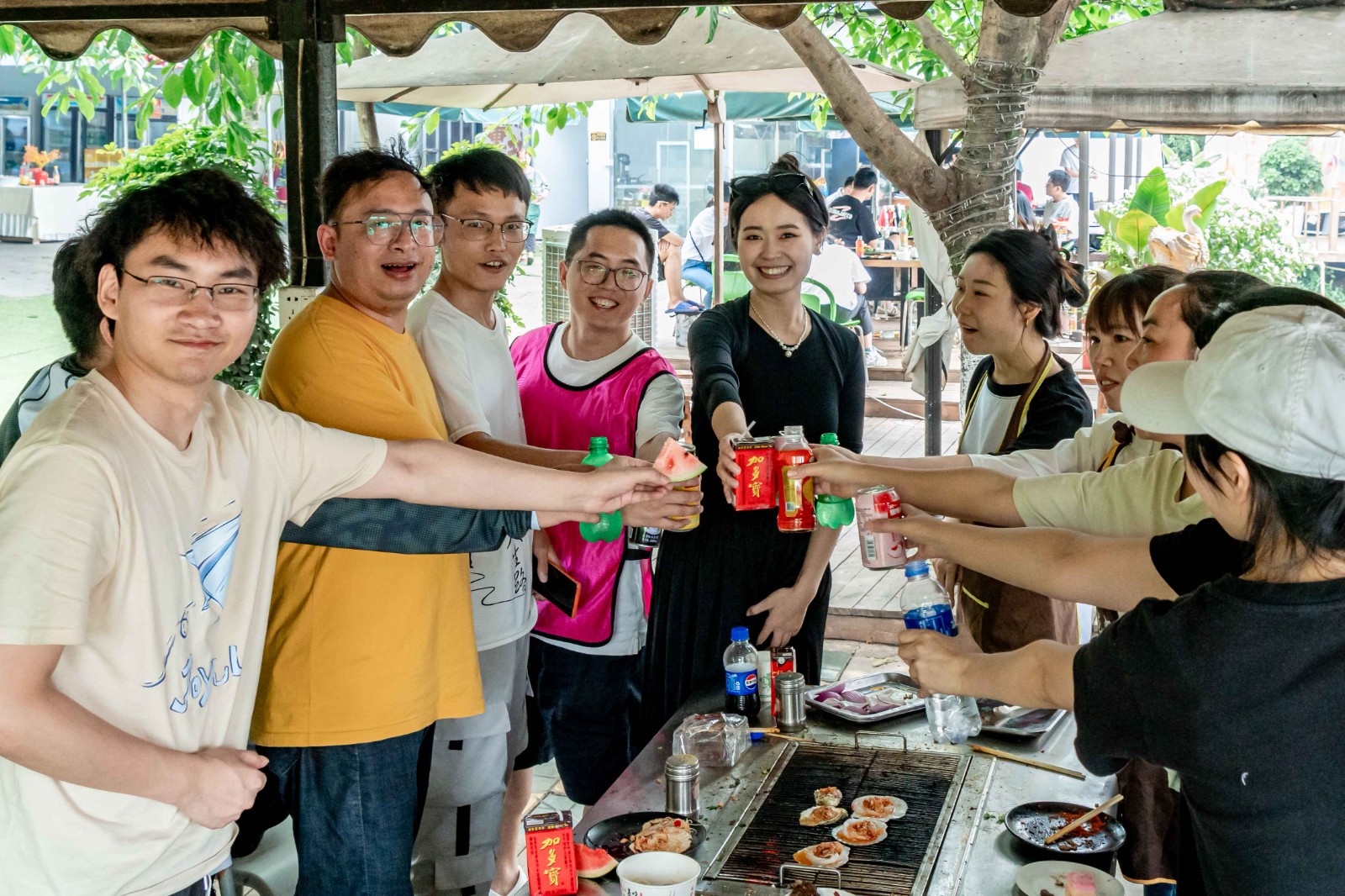 游戏过后,我们围坐在烤炉旁,享受着美味的烧烤盛宴。炭火上的食材散发出诱人的香气,大家纷纷动手烤制自己喜爱的食物。在享受美食的同时,我们畅谈着工作与生活,分享着彼此的故事和经验。这一刻,我们不仅是同事,更是亲密无间的朋友。我们举杯畅饮,为彼此的成功和团队的辉煌而欢呼。